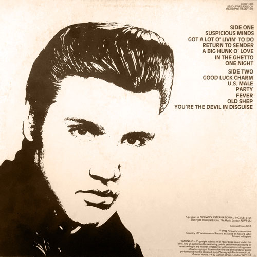 Since the title song is one of my brother’s favorites (mine as well), I have decided to kick off this series with Suspicious Minds, a 1982 compilation album released by the United Kingdom’s Pickwick International on the Camden label.