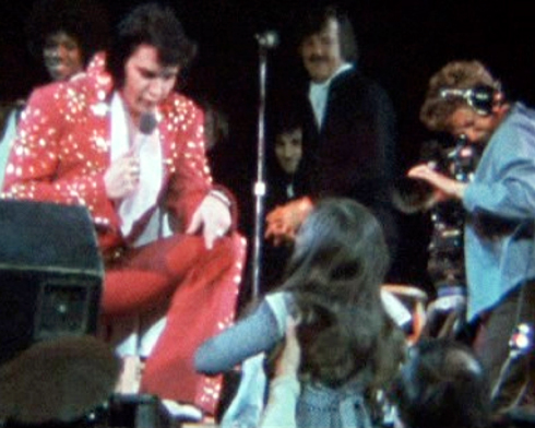 Elvis greets a fan as movie cameras roll for MGM’s Elvis On Tour documentary, Richmond Coliseum, April 10, 1972